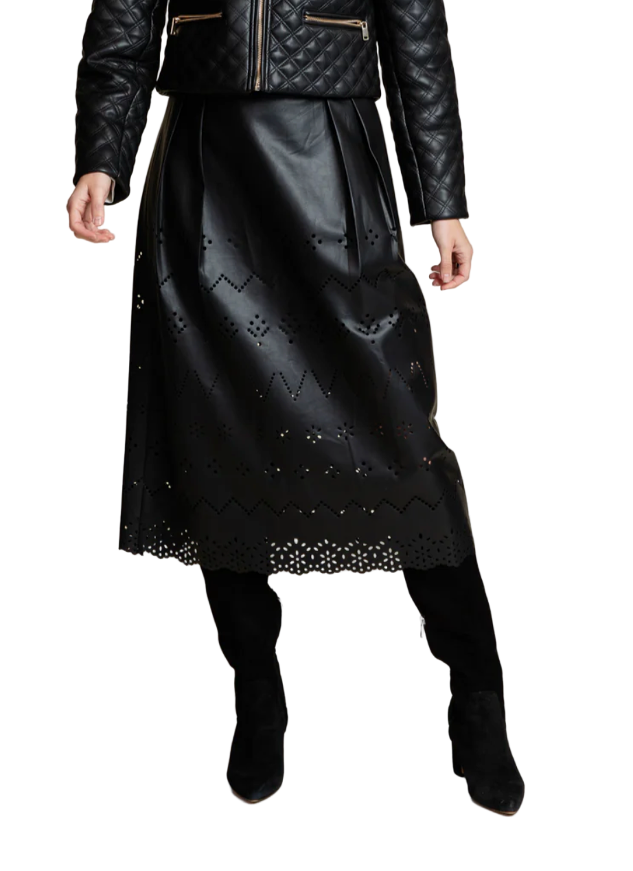 The Avalon Lasercut Leather Midi Skirt