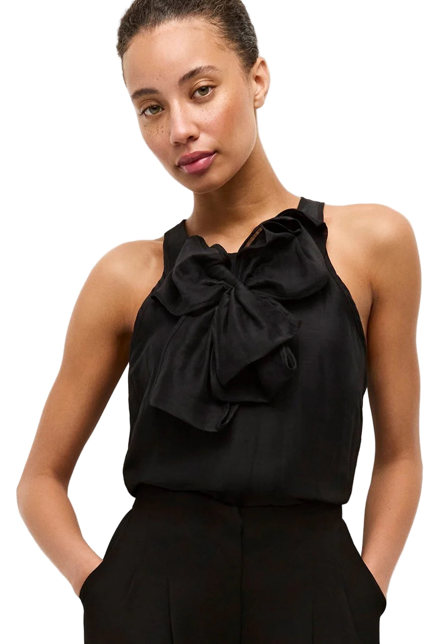 Designed for celebrating, the Indira top turns heads with its statement bow detail. Crafted from a soft silk-linen blend, this sleeveless silhouette combines modern minimalism with couture-like volume. With both polish and flair, this top is equally at home styled with tailored trousers for evening or paired with skirts like Krista for a more playful take on party dressing.