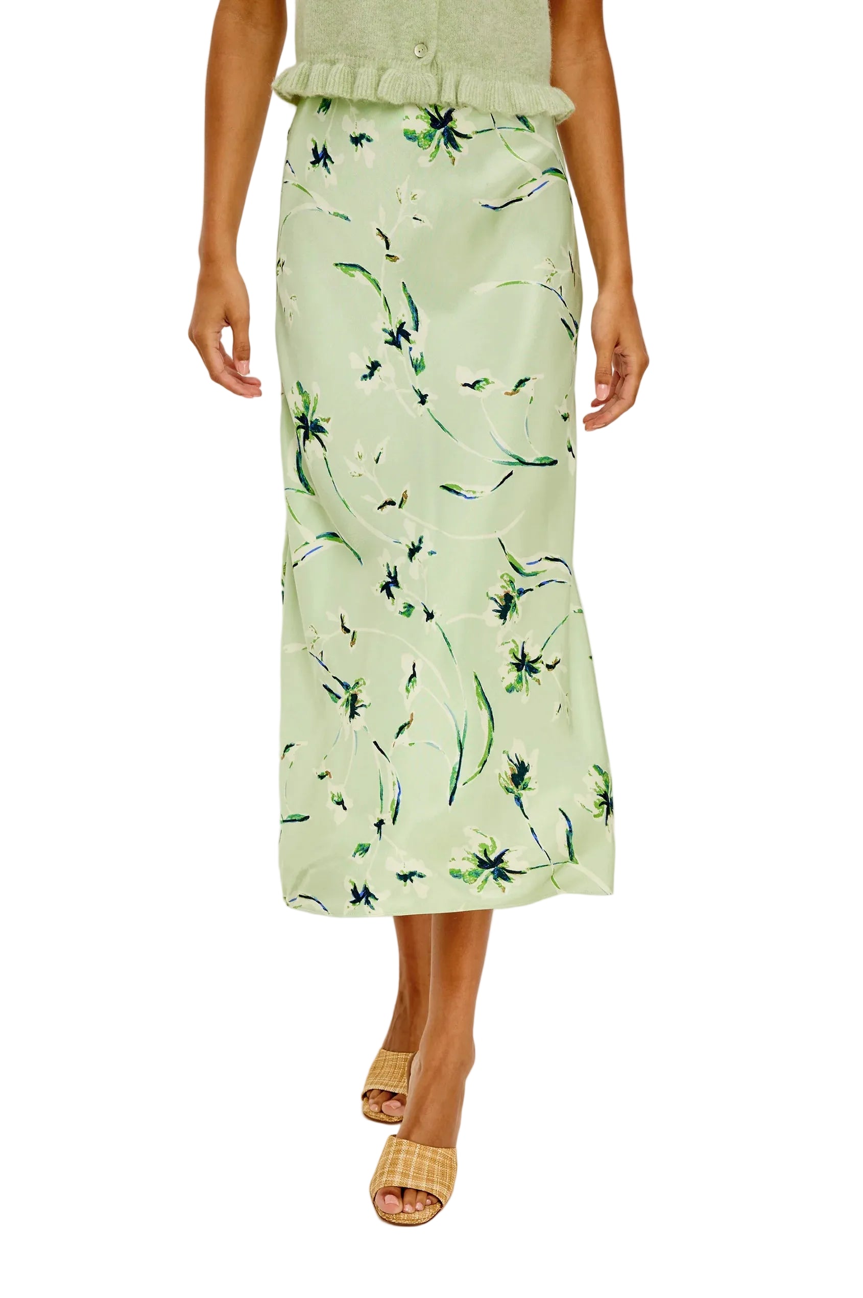 The Anya is a high-rise, body-skimming bias-cut midi skirt in lustrous satin-back crepe, with a concealed elastic waistband for a polished fit.